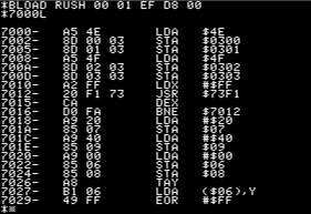 | HackFest is the annual programming competition at KansasFest. Essentially, the rules of HackFest are: write code and/or hack some hardward you get 4 days and it has to involve an unmodified apple II platform. My entry was a game based on the iPhone RUSH app written partly in Applesoft BASIC and mostly in 6502 Assembly. My IDE was Notepad (editor), AppleWin (emulator/debugger), and EdAsm (assembler). |