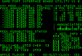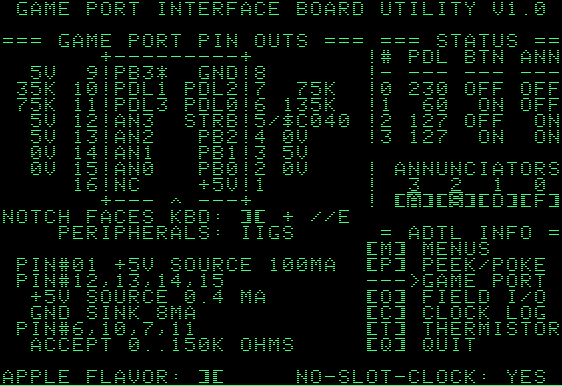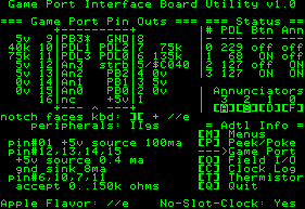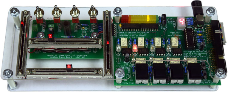 | This is the Game Port Interface Board that we demoed in 2014 and announced at the 2016 Kansas Fest as a special kFest edition. If there's demand, we'll build a few more, updated ones, that handle the shift-key mod better and have a more linear slider to PDL byte relationship. If you have an interest in purchasing one, you can email us at the address listed at the bottom of the FAQ. Please be patient with any delay in our reply. | |