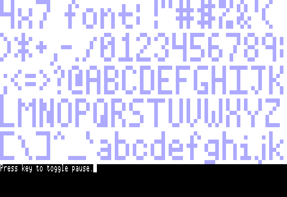 | $5B4D | $5F33 | font 1 bitmap defs (4x7 font) |